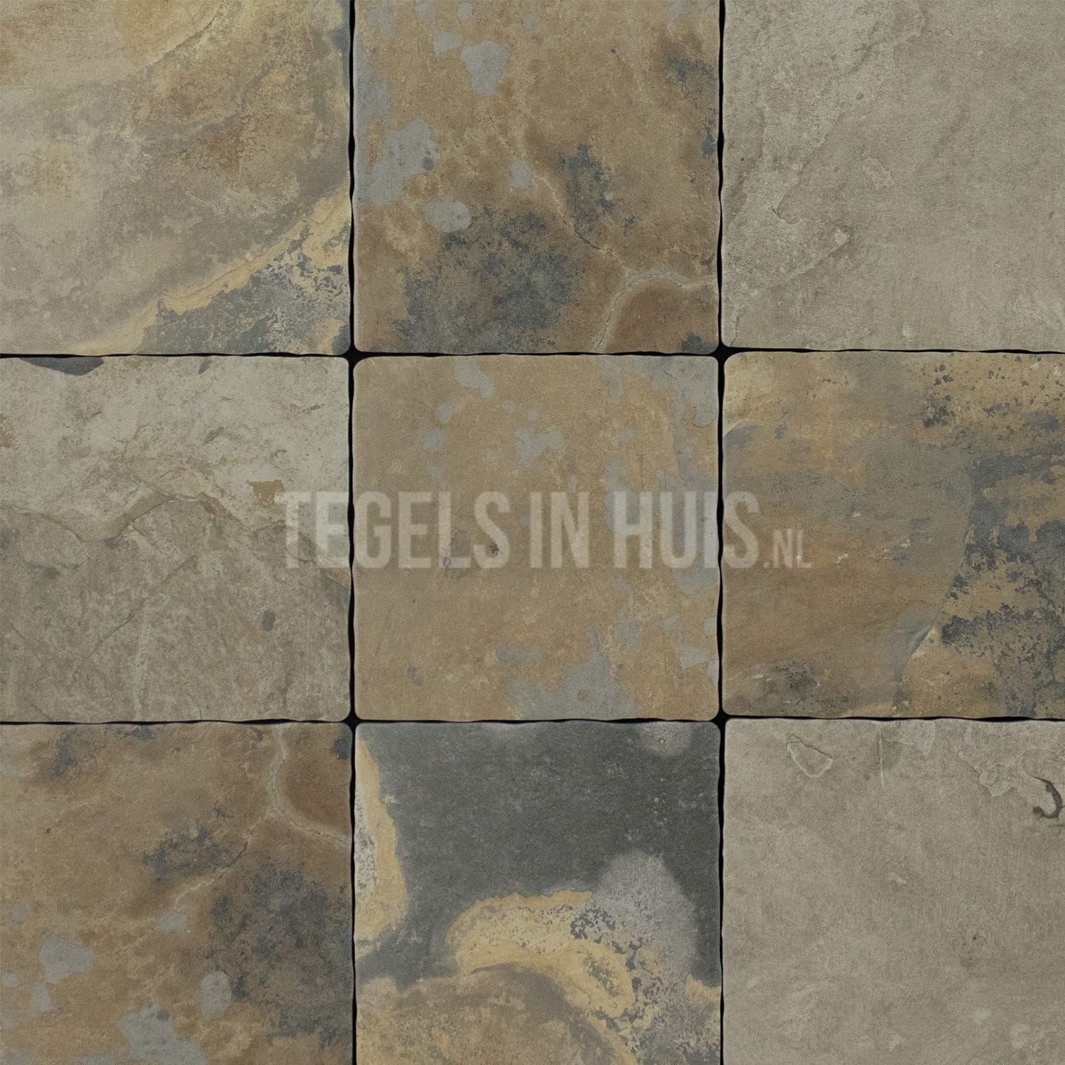 Levendig, robuust en modern. De Flagstone autumn 30×30 getrommeld heeft de bijzonder mooie looks van een leisteenvloer. Iedere tegel heeft een uniek kleurenpallet waardoor uw vloer de show steelt. Diverse bruine en -grijze kleuren lopen in elkaar over. Deze vloertegel kan als losse maat worden besteld of in combinatie met 30×50 en 50×50. Zo creëer je jouw eigen vloer in romaans verband. Schittert deze vloertegel binnenkort ook in uw woonkamer, keuken of badkamer?