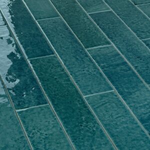 Handvorm wandtegel 6,5×20 blauw groen teal soft glans