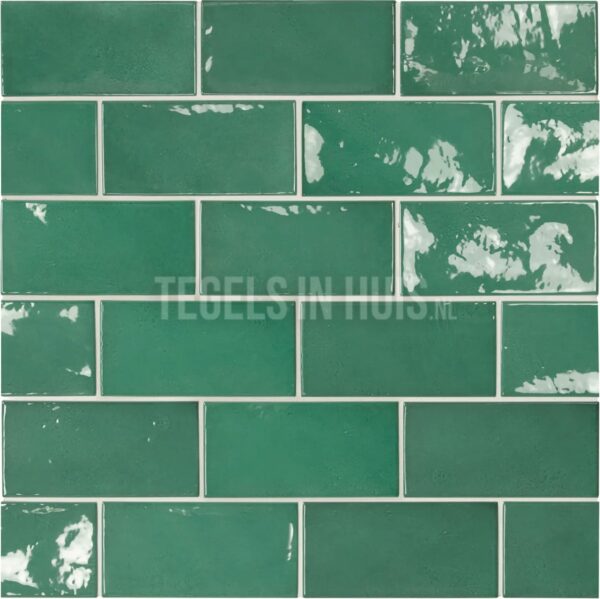 Handvorm wandtegel 6,5x13 groen soft glans aantal