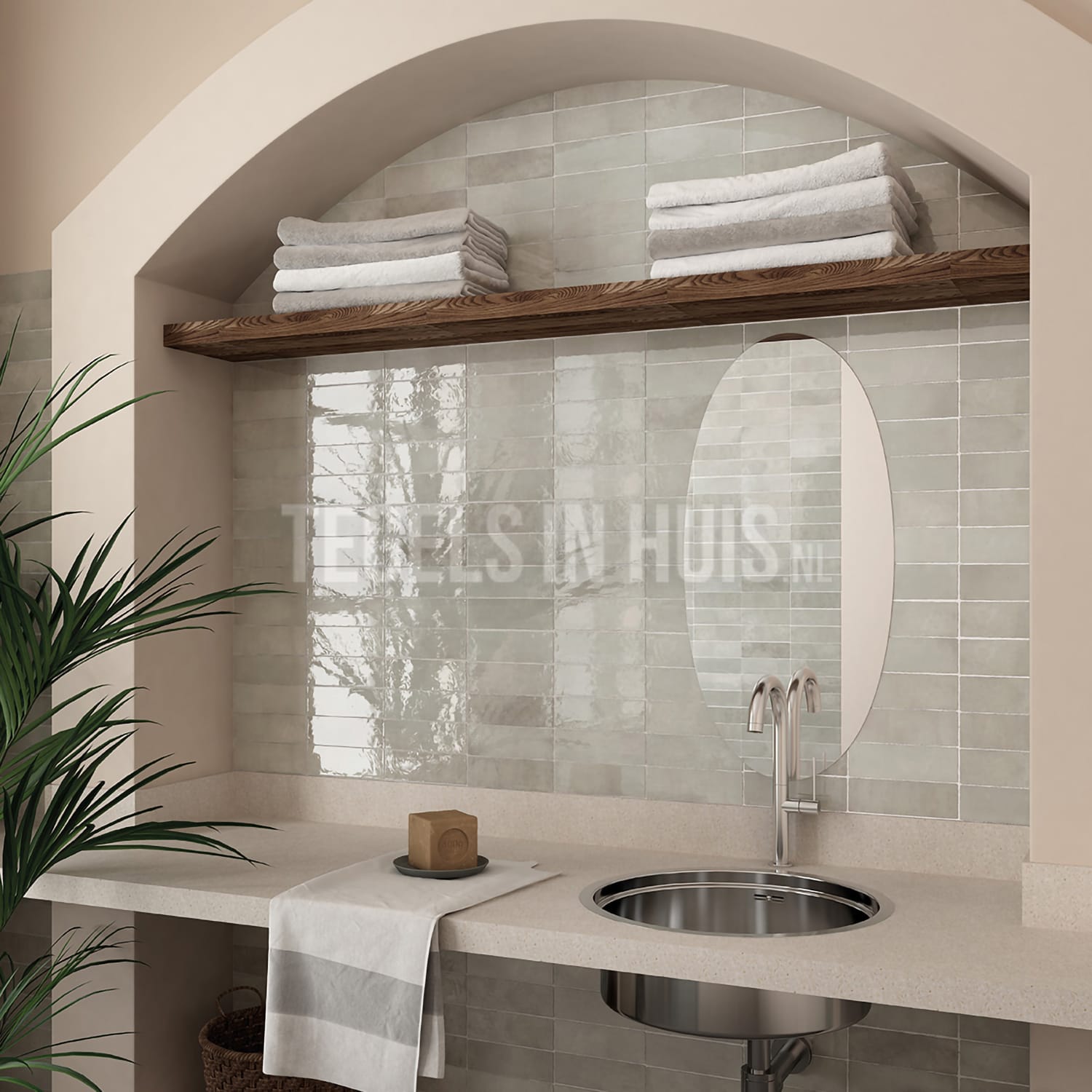 Handvorm wandtegel River 6,5x20 Vert grijs glans aantal