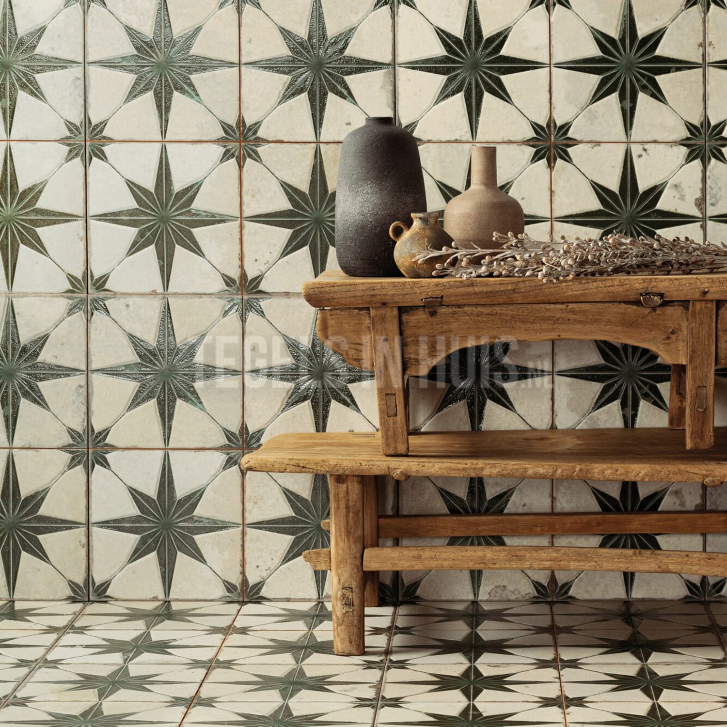 Vintage ontwerper Francisco Segarra doet het opnieuw. FS Star 3D is onderdeel van zijn nieuwe vintage-serie. Uniek aan deze nieuwe serie is het 3D effect. Het patroon heeft voelbaar reliëf waardoor uw vloer of wand extra dimensie krijgt. Vloertegel FS Star 3D is het resultaat van echt vakmanschap. Een decoratief patroon voor een sfeervolle setting. Dit is een 4 in 1 tegel. Dit betekent dat de voeglijn er vooraf is ingeslepen. U kunt deze voeglijn eenvoudig meevoegen in een voegkleur naar keuze.