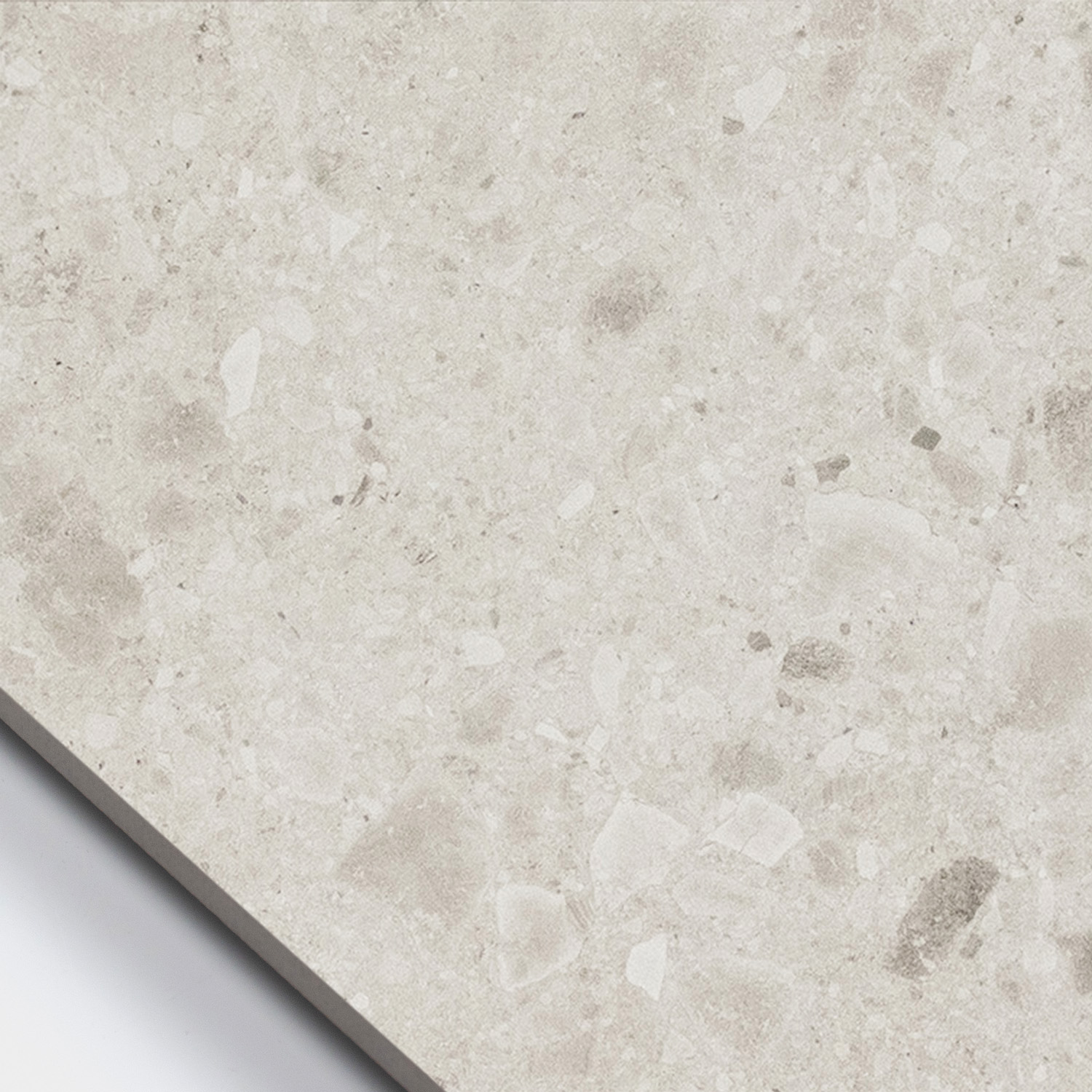 Ontdek de Vloertegel Geotech Ivoor 60×120 R10 gerectificeerd full body. Deze keramische tegel in terrazzo / granito stijl is een plaatje om naar te kijken. Terazzo / granito vloeren zijn razend populair in jaren 30 woningen, maar zien wij tegenwoordig ook vaak terugkomen bij moderne interieurstijlen. Het gespikkelde patroon geeft je huis karakter. Deze Terrazzo tegel heeft een matte finish en is beschikbaar in 4 rustige kleuren en diverse formaten (60×60, 90×90 en 60×120). Deze full-body tegel heeft een antislipwaarde van R10 en is daarmee uitermate geschikt voor in jouw woonkamer, badkamer of hal.