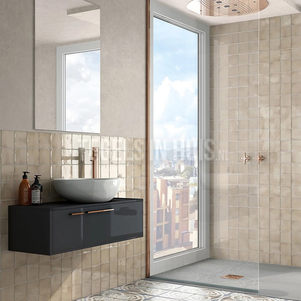 Sommige keramische tegels hebben een unieke, gebarsten glazuurlaag, ook wel craquelé genoemd. Deze speciale afwerking zorgt voor een decoratieve en authentieke uitstraling. Door de fijne scheurtjes in het glazuur kunnen deze tegels gevoeliger zijn voor vocht en vuil. Daarom is het belangrijk om ze te impregneren, zodat ze beter beschermd zijn tegen vlekken en langer mooi blijven. Gebruik hiervoor een geschikt impregneermiddel en herhaal de behandeling indien nodig voor optimale bescherming.