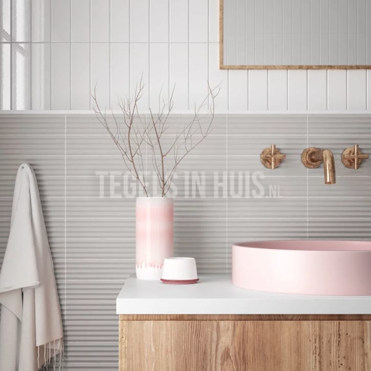 Wandtegel Costa Nova decor ribbel Praia grijs mat 5x20 aantal