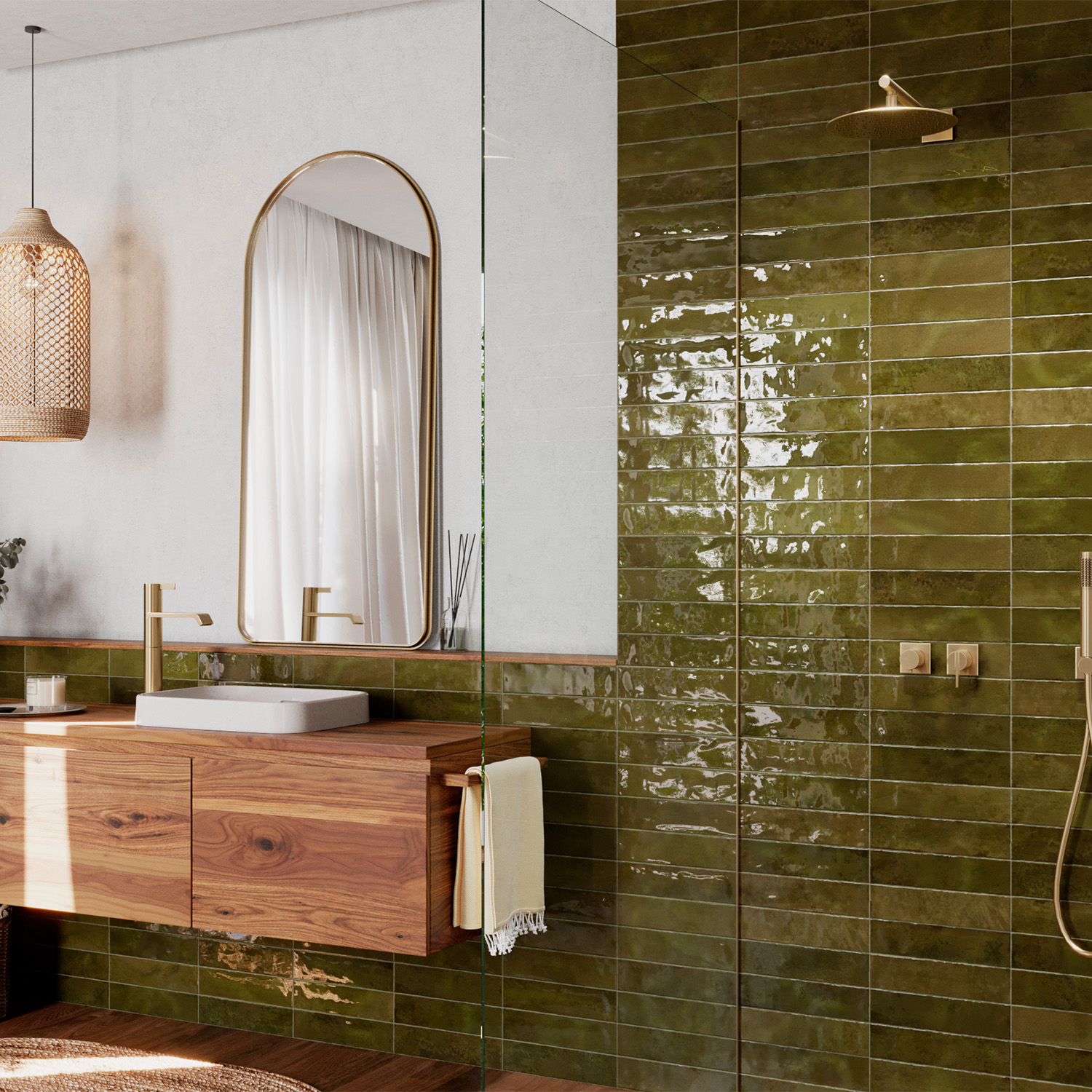 Wandtegel handvormlook Nobi Moss Groen 7,5×30 cm