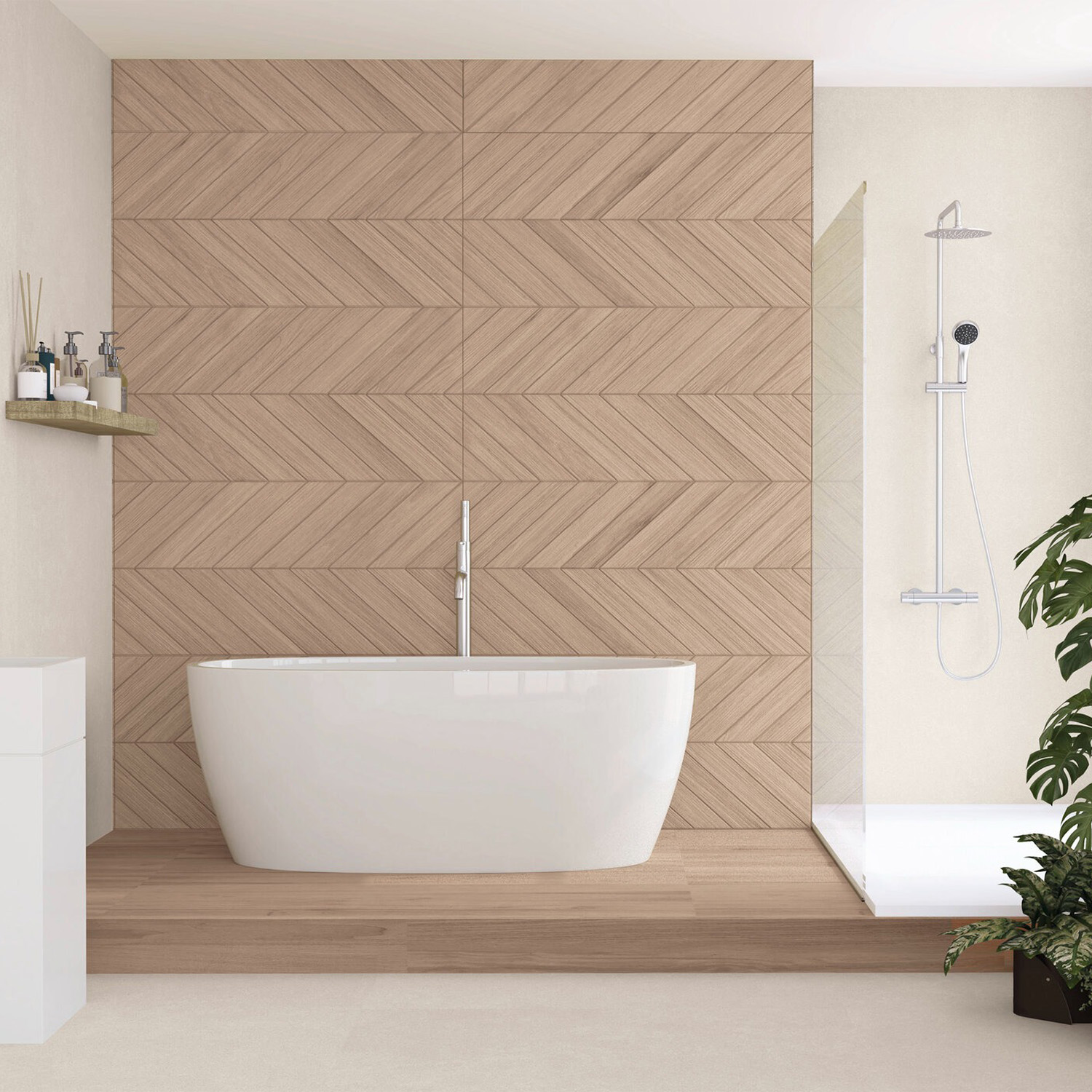 Wandtegel houtlook Kumi chevron elm 60x120 gerectificeerd aantal