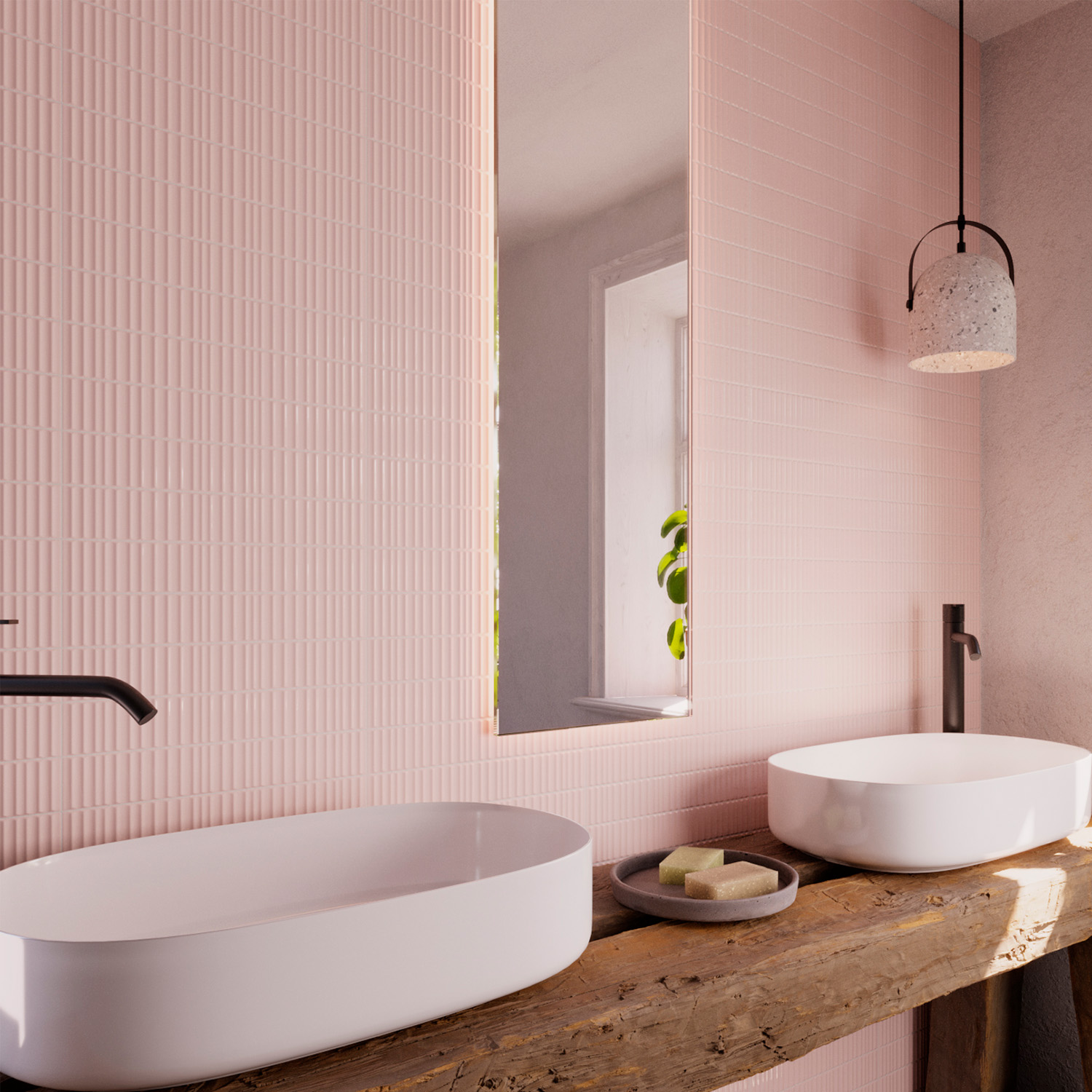 Wandtegel Tokyo ribbel blush roze 5x30 cm aantal