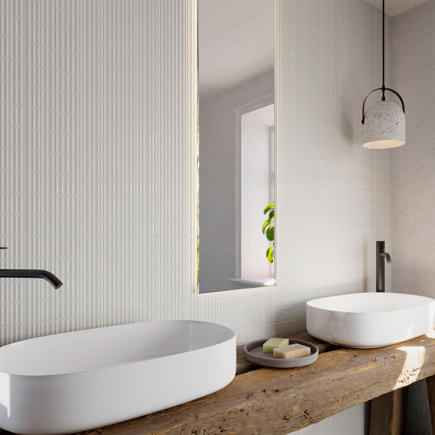 Wandtegel Tokyo ribbel smoke grijs 5x30 cm aantal